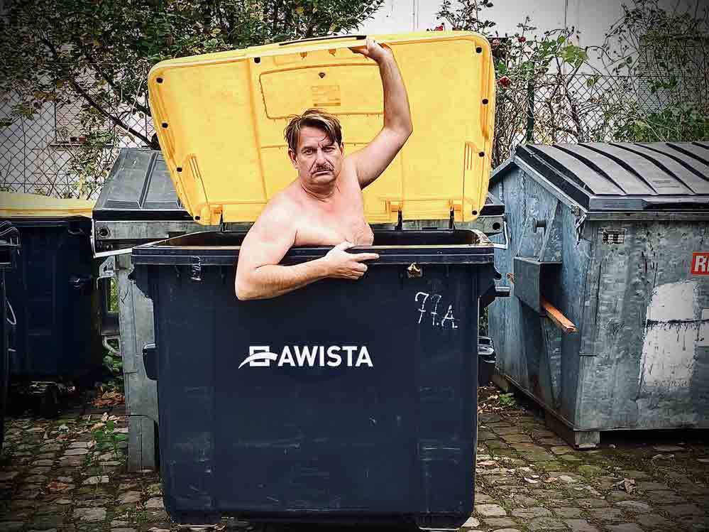Peter Trabner „steigt“ zu Diogenes in die Tonne und philosophiert über die Frage, was den Menschen in unserer heutigen, turbokapitalistischen Gesellschaft im Innersten antreibt. Warum entledigen wir uns überschüssiger Dinge, nur um immer wieder neue und noch mehr davon anzuhäufen? Warum halten uns Leasingverträge stets auf dem neuesten Stand der Technik, während wir zugleich die Aufräumexpertin Marie Kondō bewundern, weil sie uns lehrt, zu hinterfragen, ob uns ein alter Pulli wirklich noch glücklich macht? „Bereitet mir DAS noch Freude? Macht mich DAS so noch glücklich?“